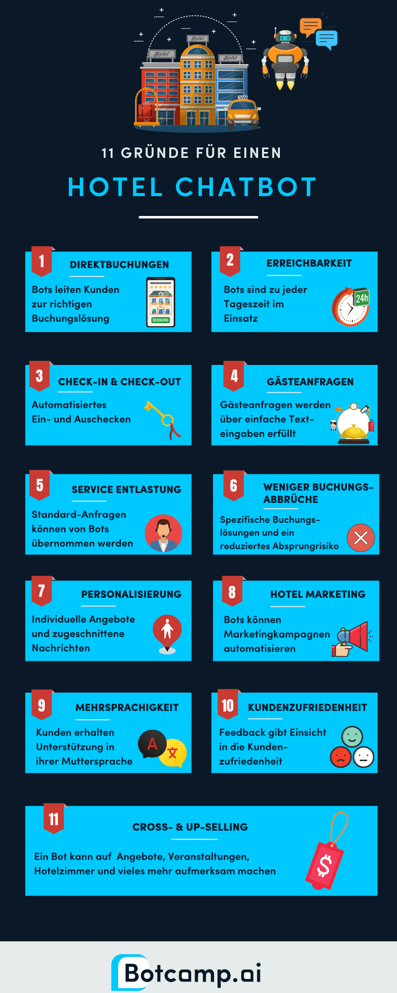 Wir schauen uns elf Einsatzgebiete von Hotel-Chatbots und Gründe dafür an, warum diese Bots wertvolle Werkzeuge sein können, um besser mit Gästen zu kommunizieren und sich vor der Konkurrenz abzugrenzen.